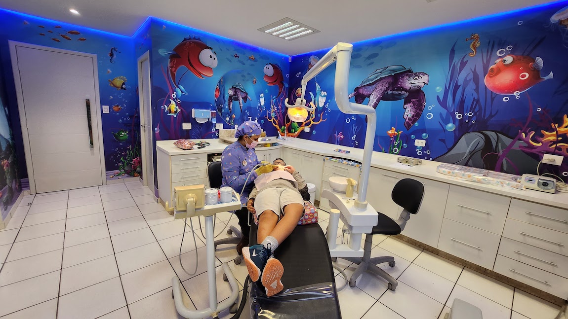 Uma clínica sem cara de hospital. Proporcionamos um autêntico mergulho no mundo do mar! Nada se compara a receber tratamento na companhia de peixes, cavalos marinhos, caranguejos, tubarões e tartarugas, e desvendar um baú repleto de tesouros ao final dessa emocionante aventura. Assim não tratamos apenas sorrisos mas também criamos memórias felizes. Acreditamos que ao associar cuidados odontológicos a aventuras no fundo do mar, estamos contribuindo para que as crianças desenvolvam hábitos de saúde bucal positivos que as acompanharão por toda a vida.